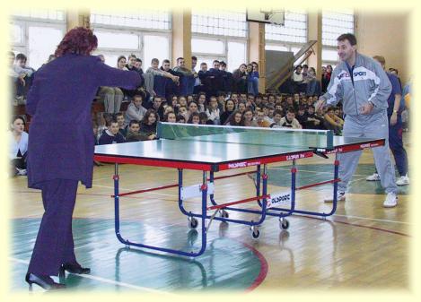 Były mistrz Polski, medalista mistrzostw świata i Europy Andrzej Jakubowicz oraz mistrzyni Polski Ewa Poźniak zaprezentowali swe nieprzeciętne umiejętności podczas pokazowej gry w tenisa stołowego, która odbyła się na parkiecie naszej sali gimnastycznej w dniu 7 stycznia br.