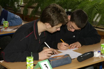W myśl hasła „co dwie głowy to nie jedna” zespół matematyków naszego gimnazjum (Ewelina Szczytyńska-Rybus, Teresa Ogiba, Adam Rębisz) po raz kolejny zorganizował konkurs matematyczny przeznaczony dla uczniów klas II gimnazjum całego powiatu tarnobrzeskiego. Uczniowie pracowali w parach co wyeliminowało u nich poczucie strachu, czy też obawy przed porażką. Na I etapie uczniowie zmagali się z zadaniami testowymi, w II zaś etapie rozwiązywali zadania otwarte wymagające logicznego myślenia jak krzyżówki, zadania tekstowe, układanki typu subkodu.